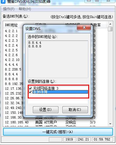 一键完成按钮会自动将速度最快的 dns设置为您电脑的dns